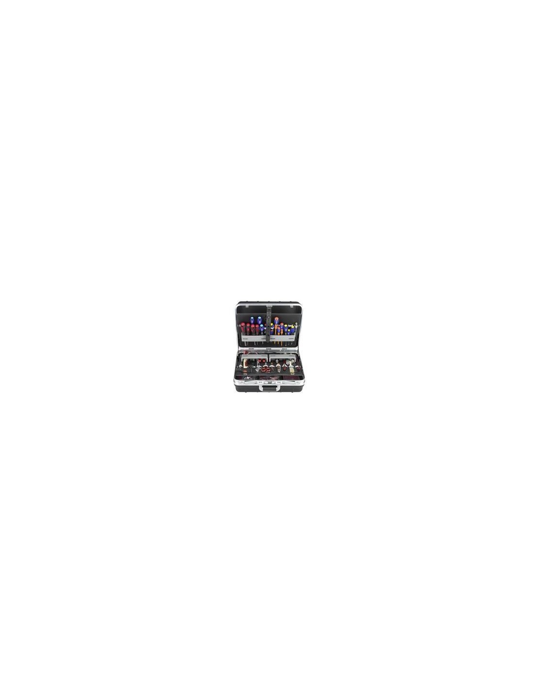Caja de herramientas de metal que incluye: Accesorios en 1/4 ": - 13 adaptadores para llave: 4 - 4,5 - 5 - 5,5 - 6 - 7 - 8 - 9 - 10 - 11 - 12 - 13 - 14 mm; - 1 trinquete reversible; - 1 prolongador 75 mm; - 1 mango deslizante 105 mm; - 1 juego de 10 conteras: 2 ranuras 5-6 mm, 2 Phillips® n° 1 - 2; 2 Pozidriv® n° 1 - 2; 4 Torx®: 10 -...